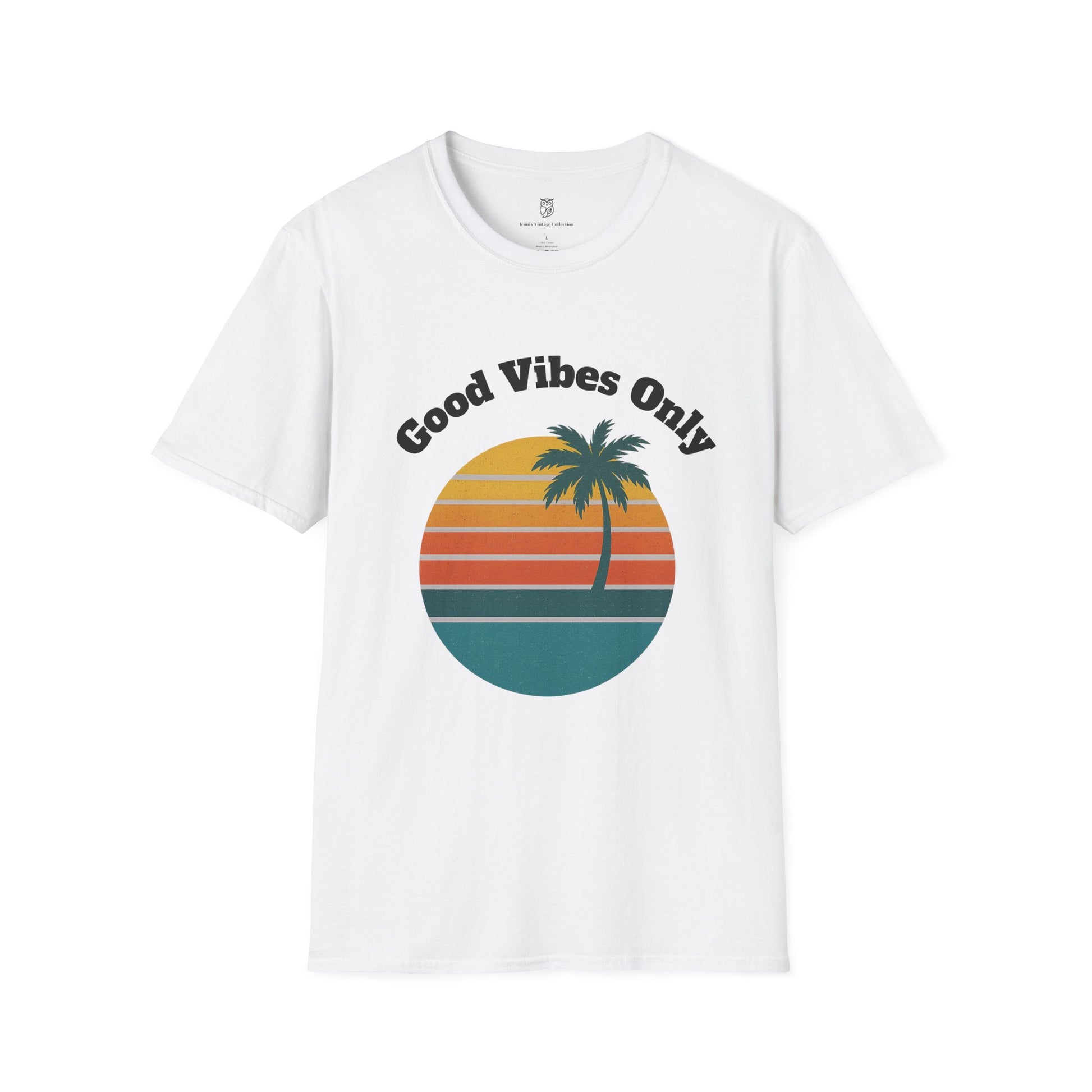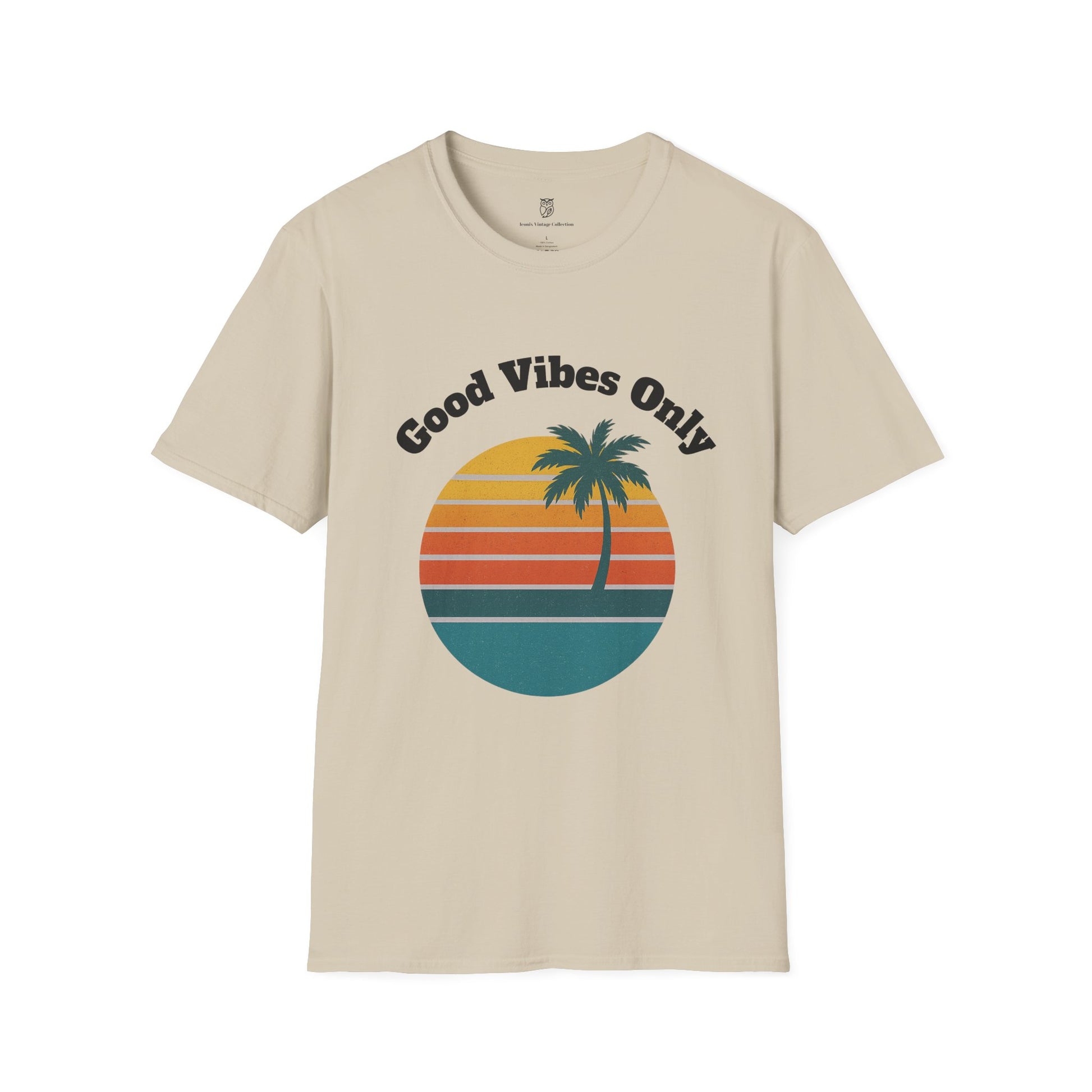 Good Vibes Only T-Shirt — Retro Palm Sunset Tee