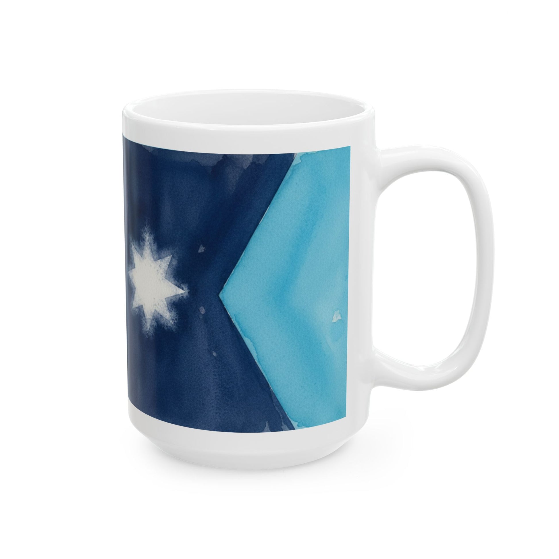 Each sip from this ceramic mug brings the calm of snow-blue tones and a hand-painted, watercolor feel—clean shapes and a bright white star accent wrap around the cup to create a simple, contemplative scene. The comfortable C-handle and high-gloss finish make it a daily companion at a desk or kitchen counter. Microwave- and dishwasher-safe, lead- and BPA-free, it’s made to be used and enjoyed often.